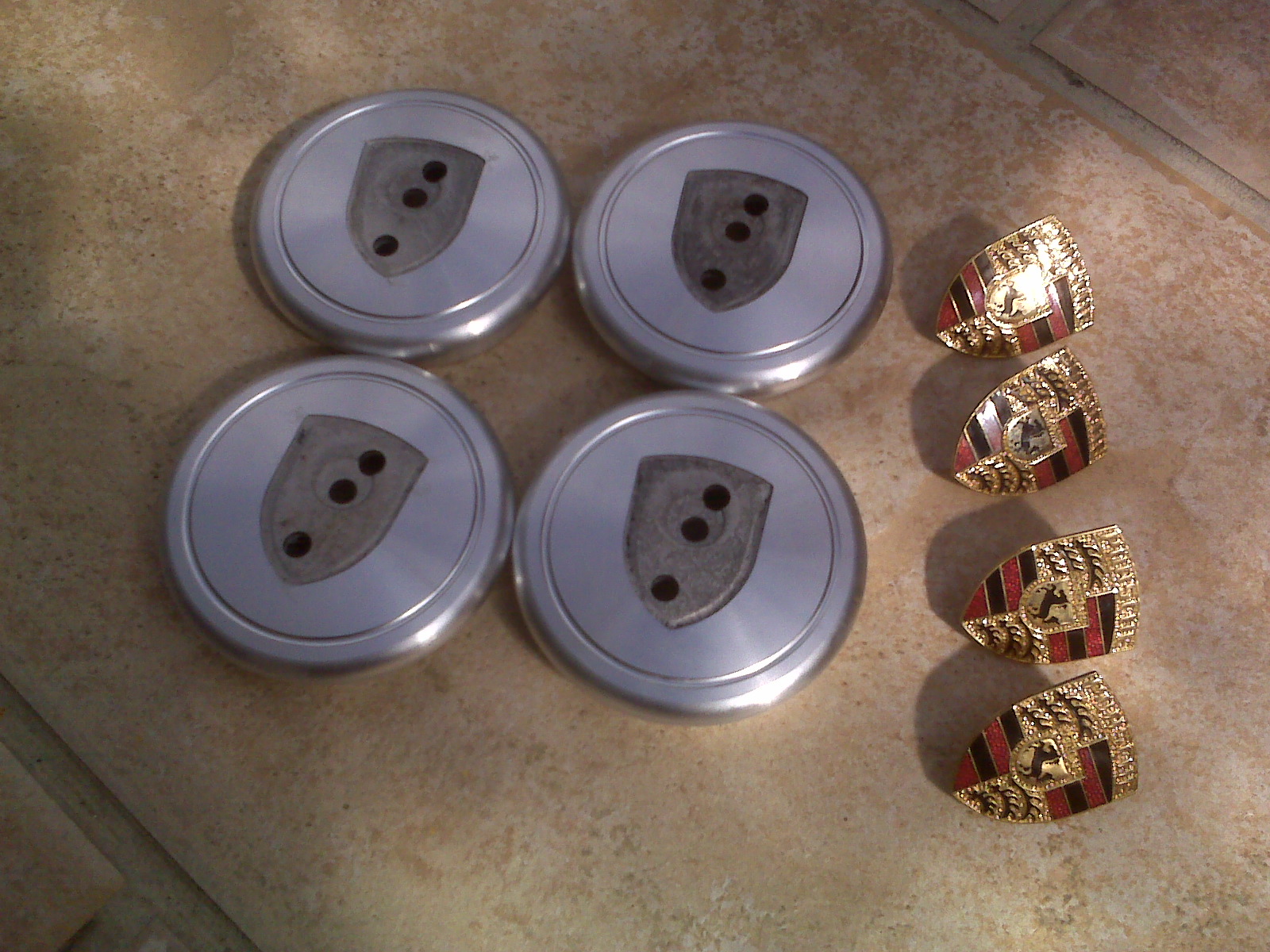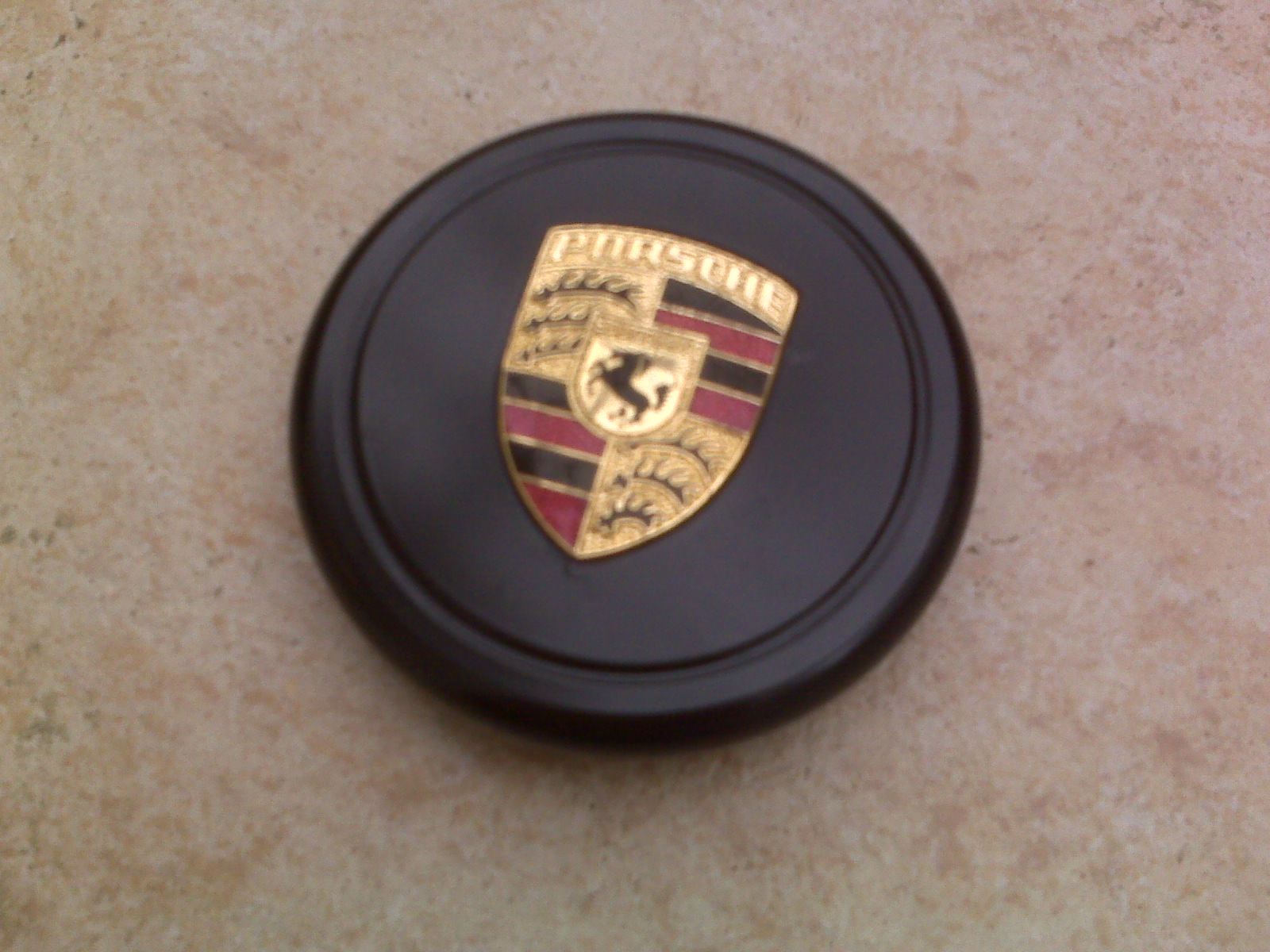 After removing the paint with paint stripper and removing the Porsche enameled badge, you are left with a turned aluminum surface.
