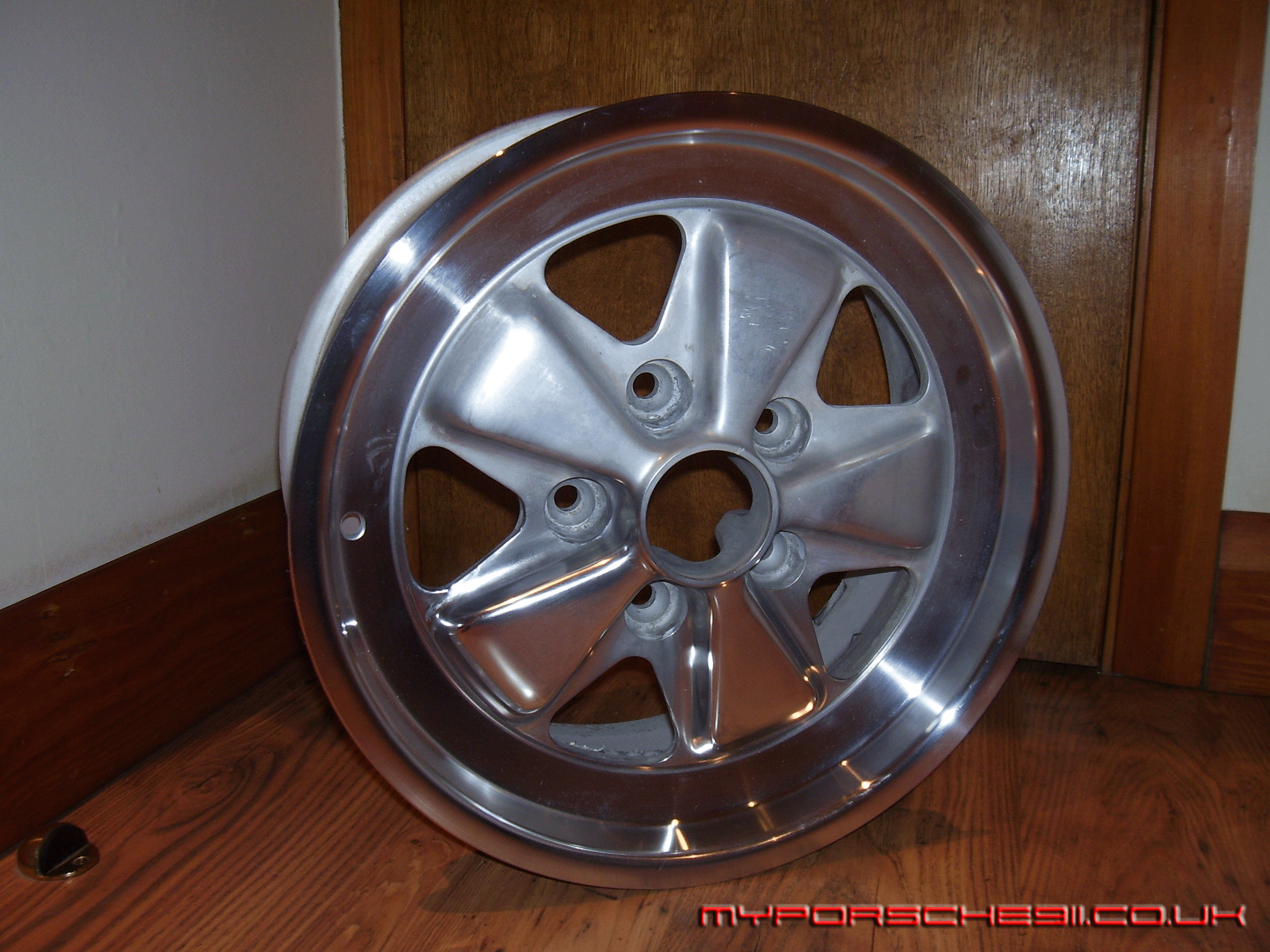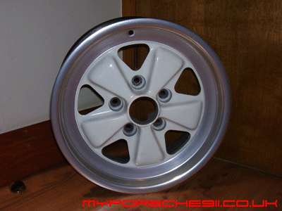 This is the wheel I started with (a 16” x 7” 951 type Fuch). The rims are annodised and have some light scratches with white painted centers. |